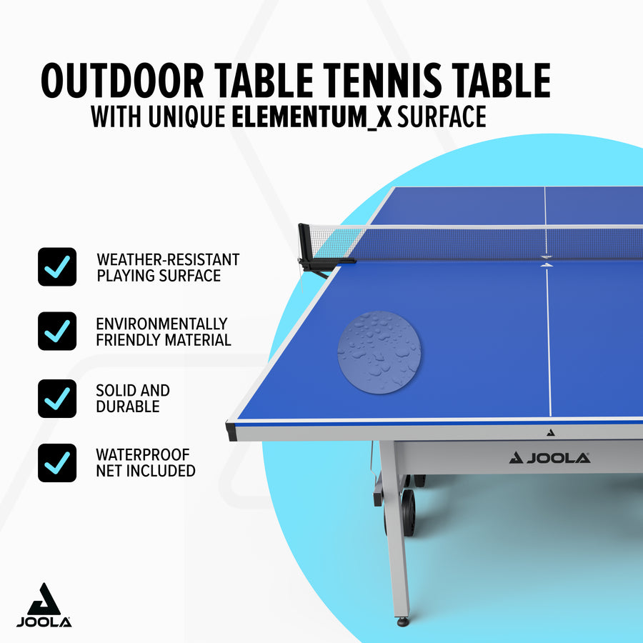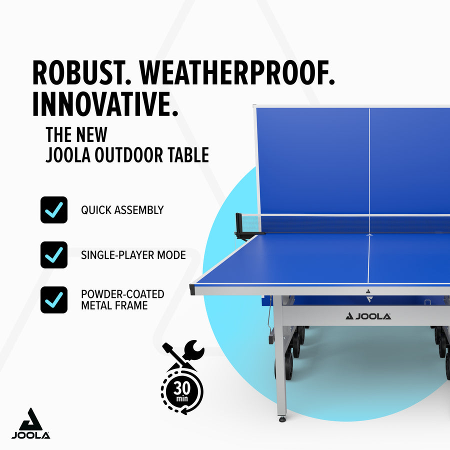 Sunshine or rain – the JOOLA J500X is always ready for your next match. With its high-quality CMF surface and sturdy construction, it delivers consistent playability and maximum control. Perfect for anyone looking for a durable, mobile, and weatherproof table tennis table – whether in the garden, on the patio, or at the park.